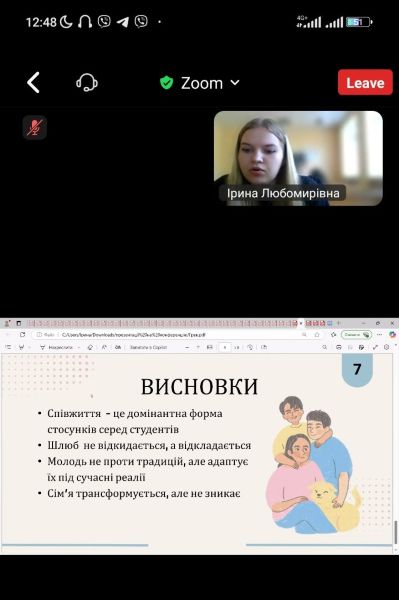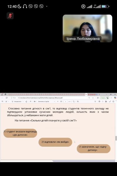 Катерина Ветрова та Грек Дар’я, здобувачки 1 курсу спеціальності «Транспортна логістика», продемонстрували результати опитування студентів Київського інституту залізничного транспорту, визначивши ставлення молоді до сім’ї та шлюбу.