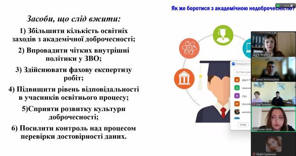 Подолання академічної недоброчесності є складним та тривалим процесом, наголосила доповідачка. Проте цей важкий шлях необхідно пройти задля виведення вітчизняної освіти на якісно новий рівень.