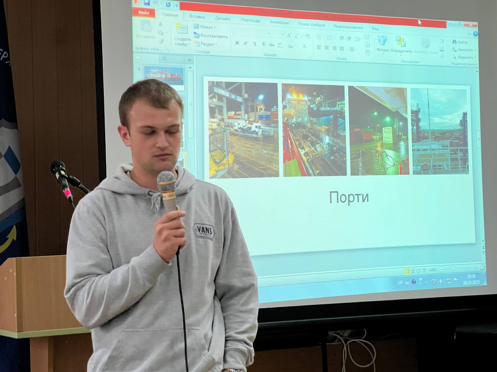 Студенти інституту Микола Дудка (освітня програма «Навігація та управління морськими суднами») та Христина Мазепа (освітня програма «Управління судновими технічними системами та комплексами») зробили презентації своїх останніх плавань та розповіли про рейси в статусі кадетів.