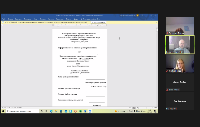 Здобувачі вищої освіти прозвітували щодо отриманих результатів роботи представивши під час онлайн-захисту презентації, оформлені щоденники та звіти сформовані за результатами проходження навчально-ознайомлювальної практики.