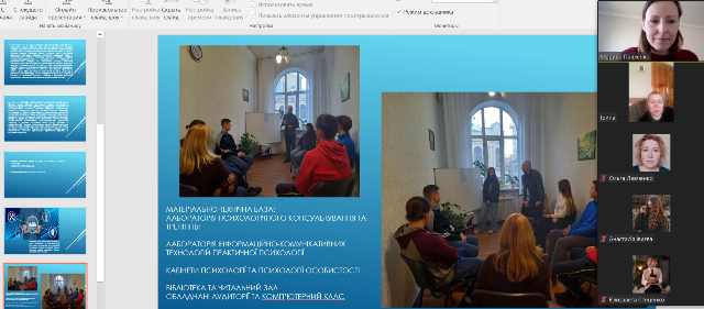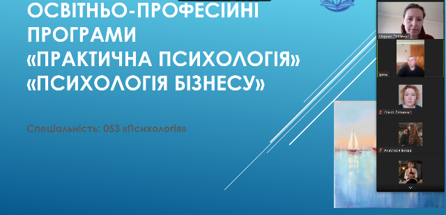Під час зустрічі з майбутніми випускниками кафедрою психології та соціально-гуманітарних дисциплін було презентовано дві освітні програми: «Практична психологія» та «Психологія бізнесу», надано інформацію про умови вступу, матеріально-технічну базу закладу та перелік посад, які можуть обіймати випускники даних освітніх програм.
